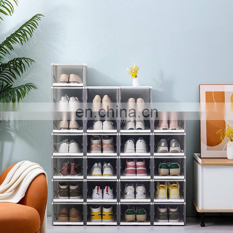 Home > Products > Home Storage & Organization > Best Quality Black Closet Rack Standing Transparent Storage Plastic Box Cabinet Shoe Organizer Stackable