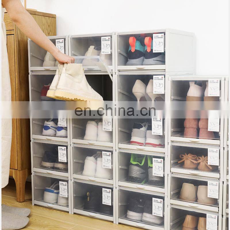 Best Quality Black Closet Rack Standing Transparent Storage Plastic Box Cabinet Shoe Organizer Stackable