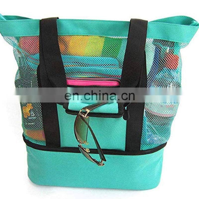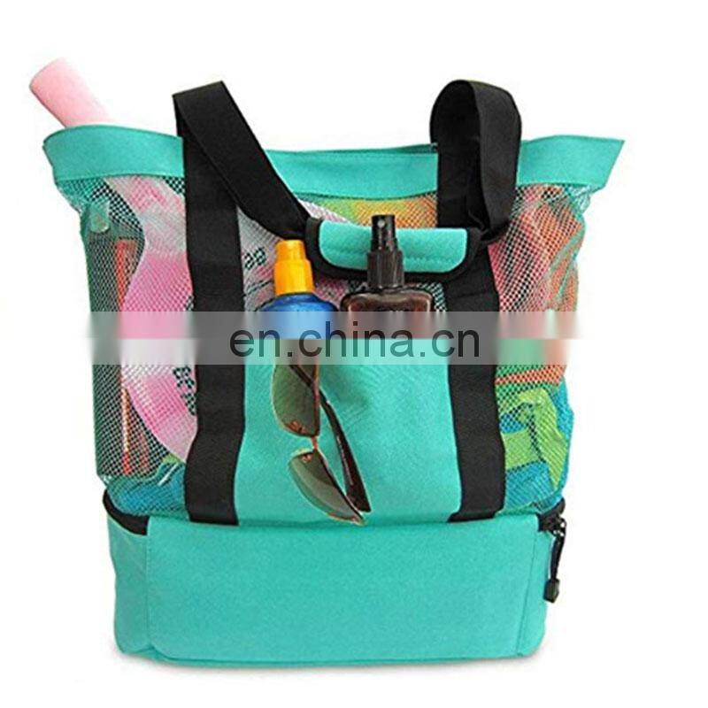 Eco Friendly Black Foldable High Quality Logo Nylon Waterproof Pink Mesh Beach Bag