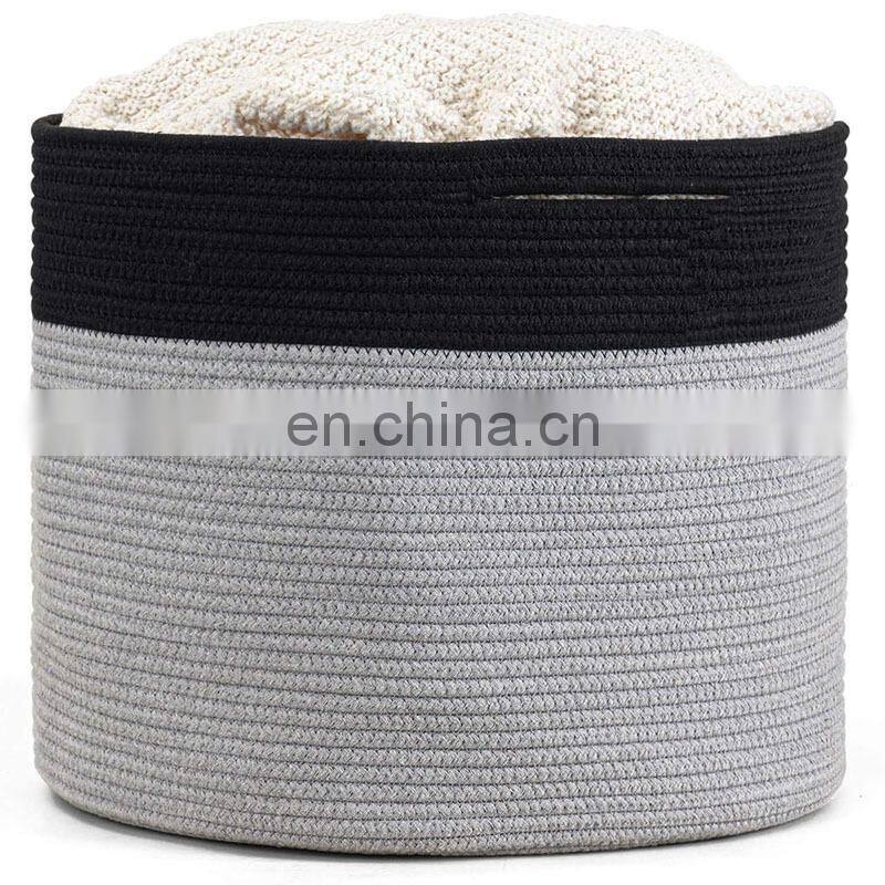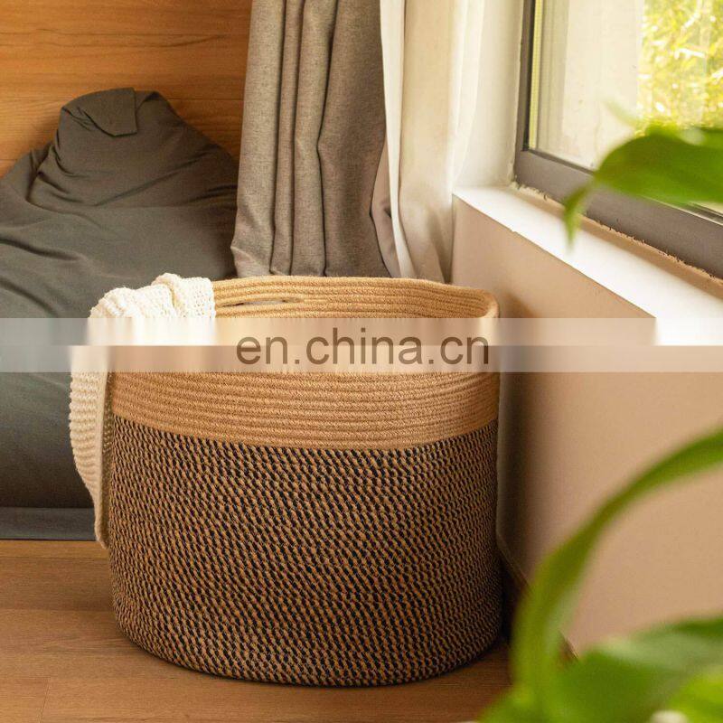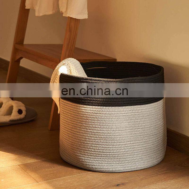 2021 New Arrival Rope Handle Organizers Cotton Woven Large Storage Basket Foldable