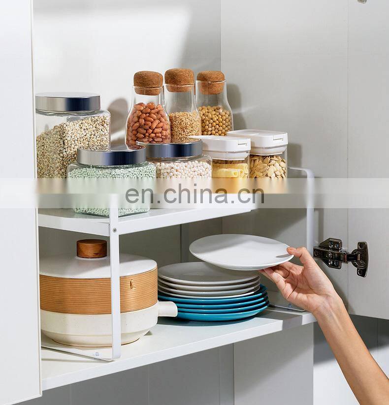 Home > Products > Home Storage & Organization > Retractable Metal 2 Layer Multifunctional Multipurpose Kitchen Cabinet Storage Rack