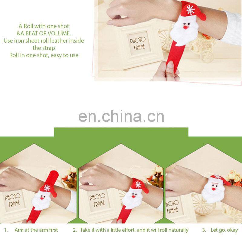 Christmas Slap Bracelet for kids. Gift this to your kids on the christmas ocassion. To Use as a bracelet: simply hold the slap band tightly one end, tap the wrist gently to let it wind around To straighten: unwind the strap and stretch it untill lt makes a "snap" sound.