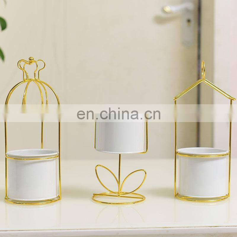 Best Seller Cheap Online Gold Planters Metal Artificial Indoor Table Flower Pot Cute