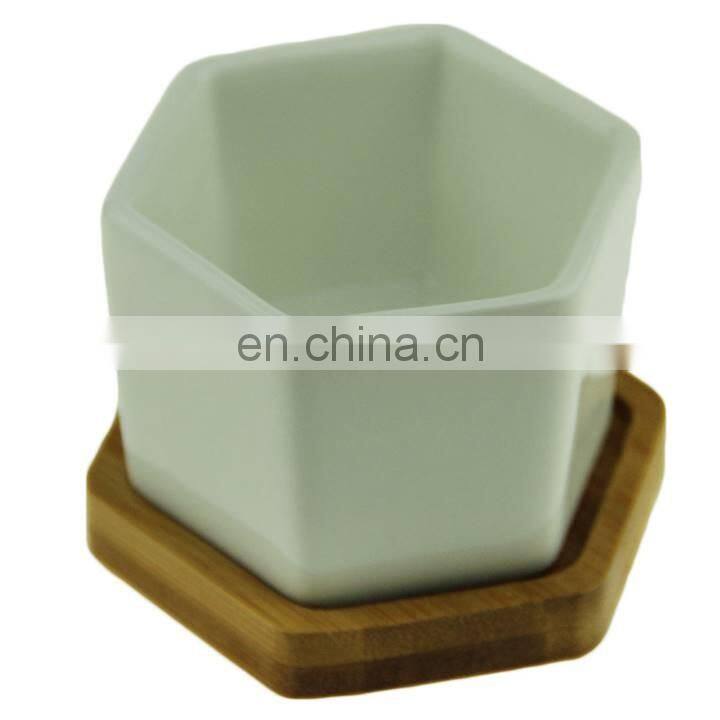 Ceramic Square Succulent Cactus Plant Pot With Wooden Tray