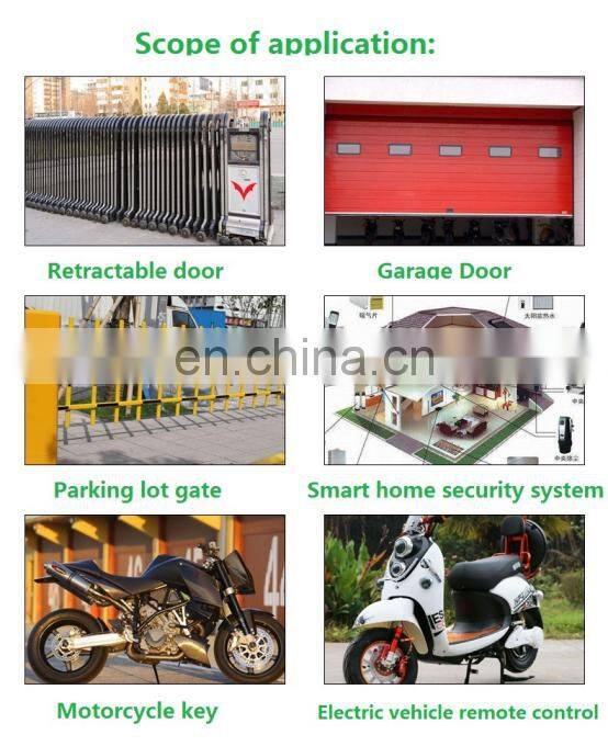 Wireless remote control switch, remote control socket, data transmission, remote control toys, anti-theft alarm host, garage door, rolling gate, gate, telescopic door and other door control industry and remote control audio field.