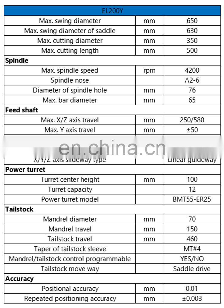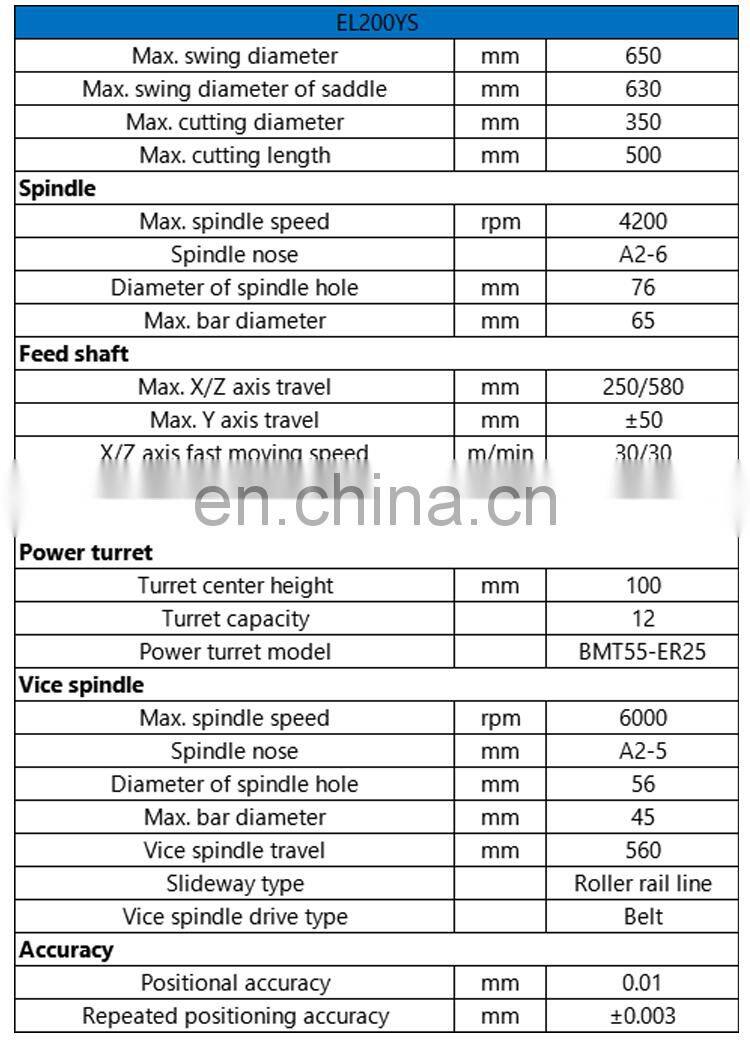 High Rigidity 3 Axis Cnc Lathe Automatic EL200Y Cnc Frame Cast Iron for Lathe