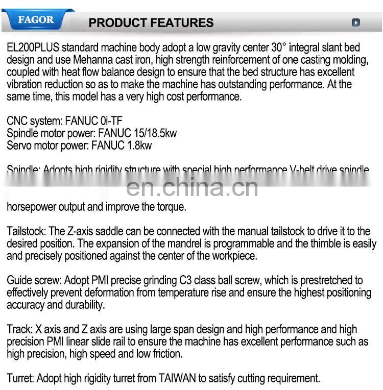 High Quality CNC Lathe Machine Fanuc System Slant Bed Lathe EL200