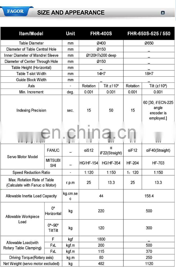 FHR Series 5 Axis Hydraulic Brake CNC Milling Machine Rotary Table
