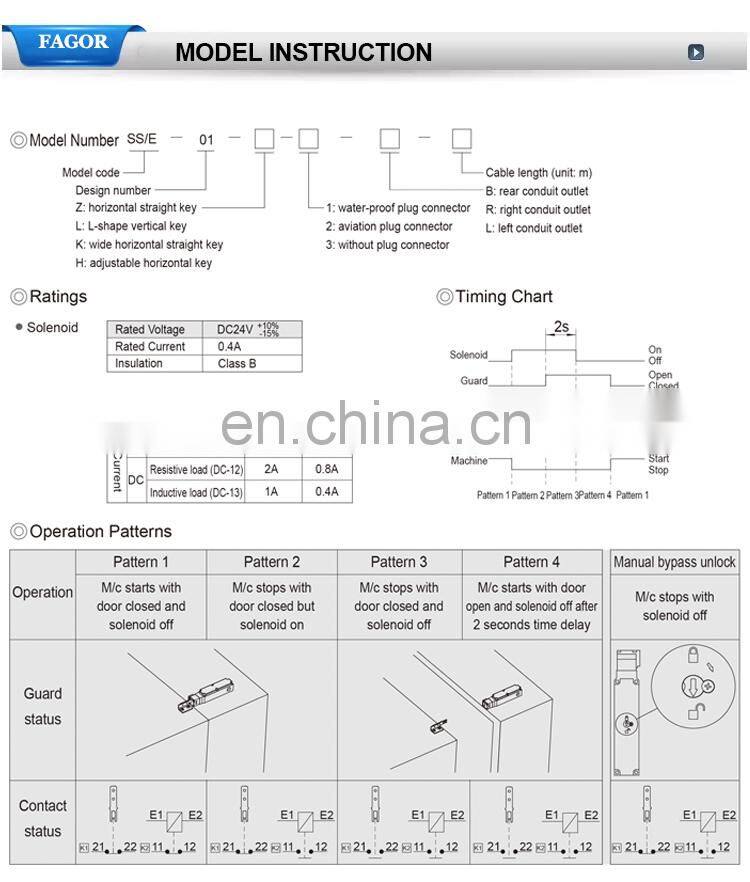 Cheap SS-E Series Mechanical Lock and Solenoid Unlock Safety Interlock Door Switch