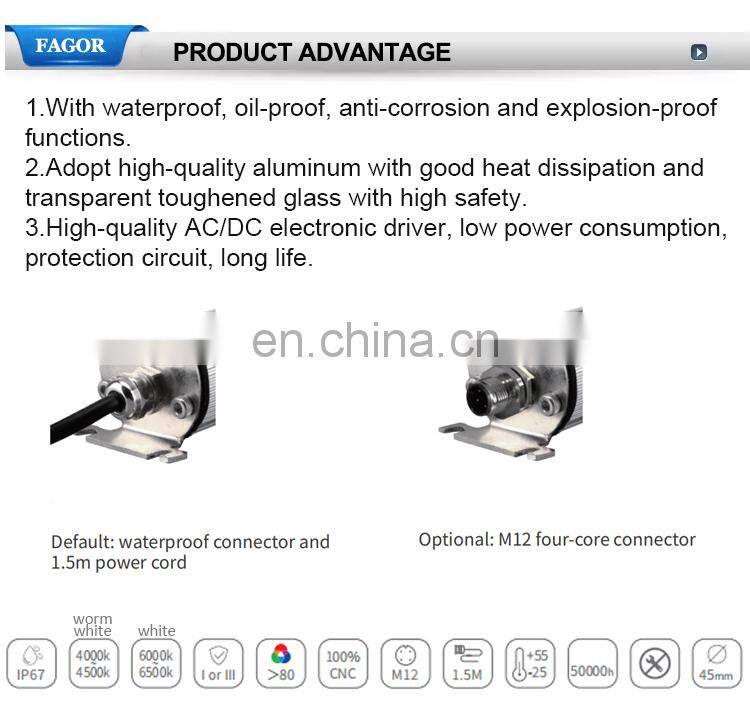 Industrial Light LED Work Light AC/DC 24V White and Warm White M12 Connector Optional
