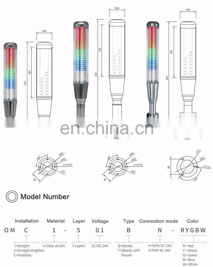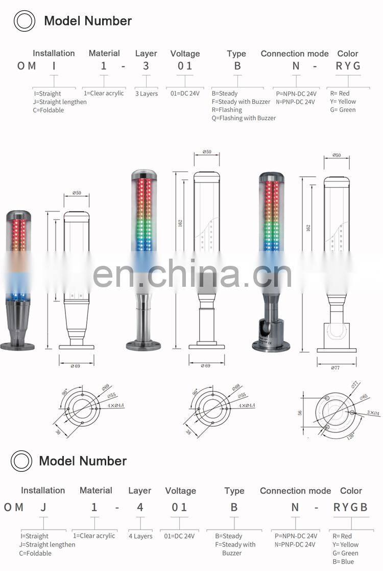 - OM Warning Led Signal Tower Light 3 Colors Light DC24V With Buzzer