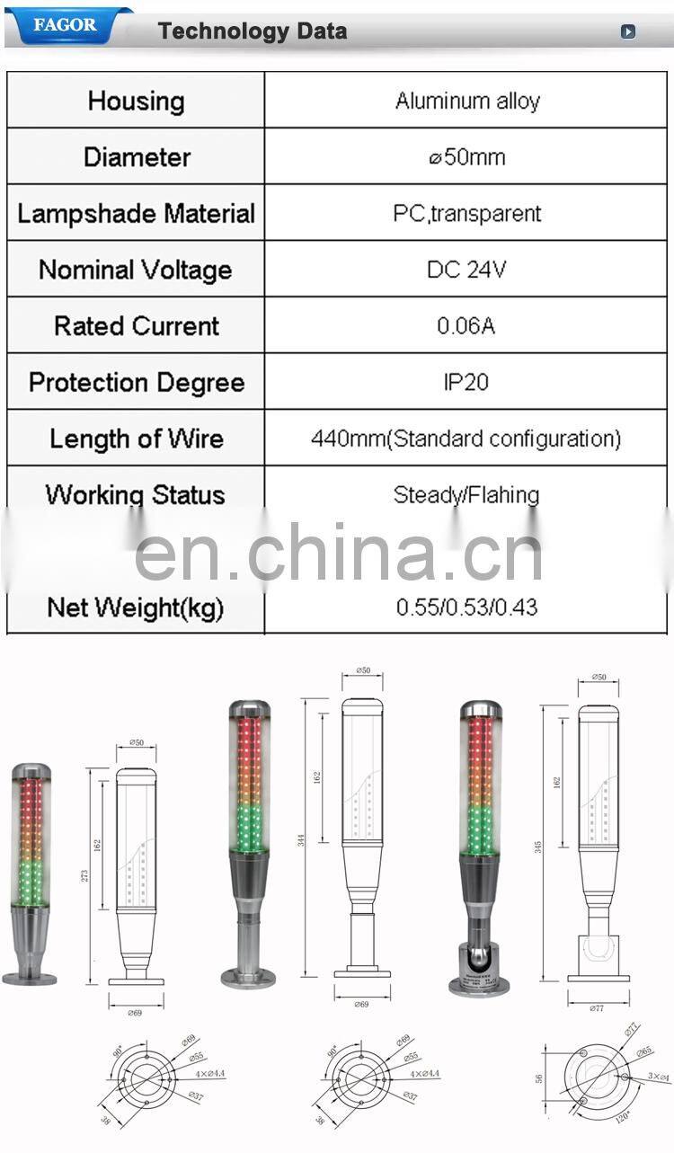 - 3 Colors Led Signal Tower Light Warning Light DC24V Red Yellow Green Light VMC Use