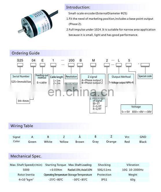 S25 Standard Rotary Encoder 25mm Incremental Encoder Rotary 200 Resolution Mini Solid Shaft Encoder