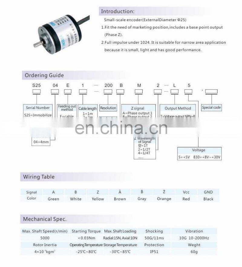 S50 5mm Optical Encoder Sensor 1024 Ppr Incremental Optical Encoder
