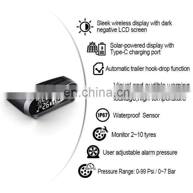 2020 Promata High Quality Car Wireless Tire Pressure Monitoring System With Solar Powered Car TPMS
