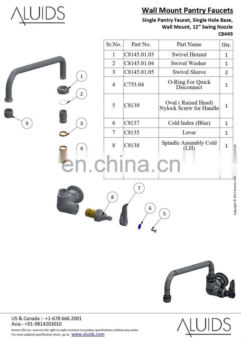 Pantry Faucet With Single Hole Base Wall Mount Swing Nozzle Length 6", 12", 14" in Cheap Price From Manufacture