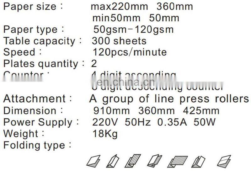 The folding machine is mainly used for folding paper of various sizes and thicknesses within the design range, and is suitable for high-volume folding of fast printing centers, production companies, official correspondence documents, and business letters.