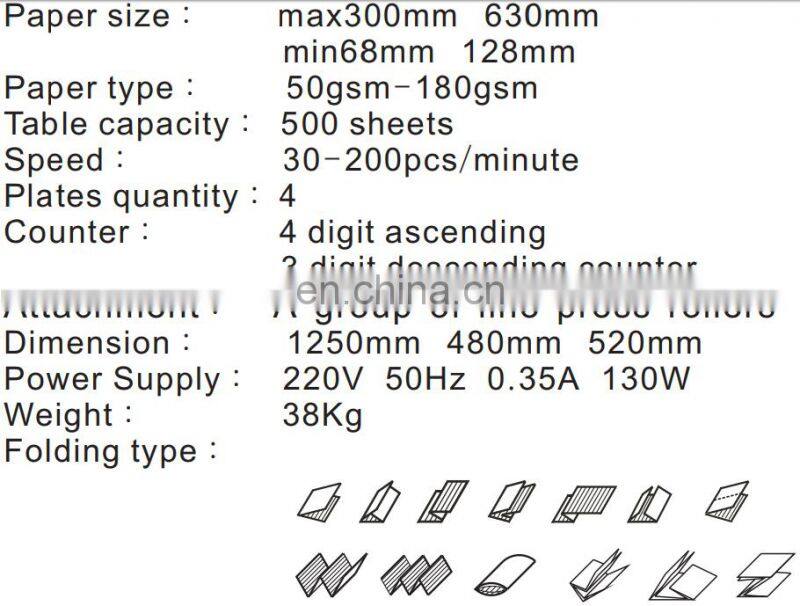The folding machine is mainly used for folding paper of various sizes and thicknesses within the design range, and is suitable for high-volume folding of fast printing centers, production companies, official correspondence documents, and business letters.