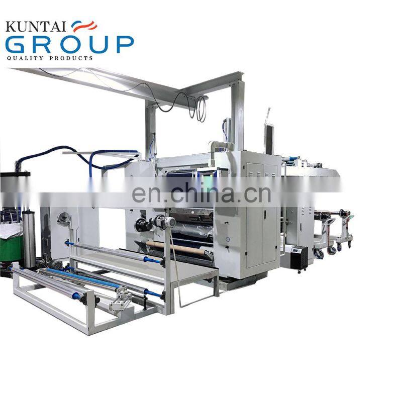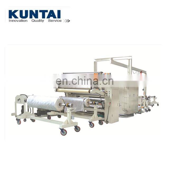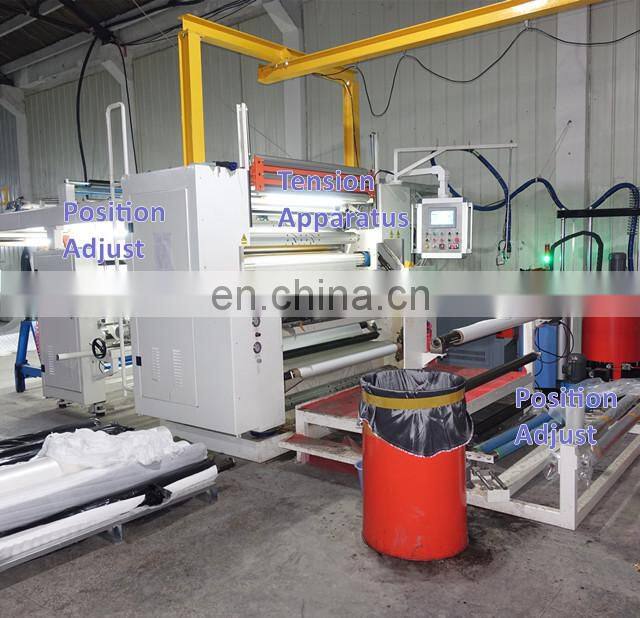 is mainly consisted of fabric rewinding and unwinding units, fabric and film conveyor systems and tension controller, film feeding and lining or film carrier rewinding device, hot melt glue melting unit (optional), pump (optional), conduction oil source system (optional), glue dot transfer unit, laminating device, cooling device, PLC and other devices. It is compact, highly automatic and easy to maintain.