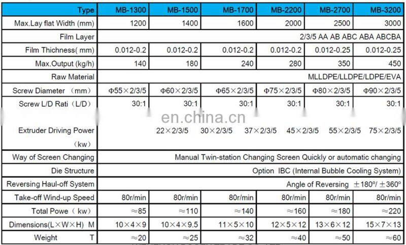 It is used for blowing the various plastic film of low density polyethylene(LDPE),high density polyethylene(HDPE)and linear low density polyethylene(LLDPE)etc, which are widely used for packing industrial products, garments and food and for covering farmland.