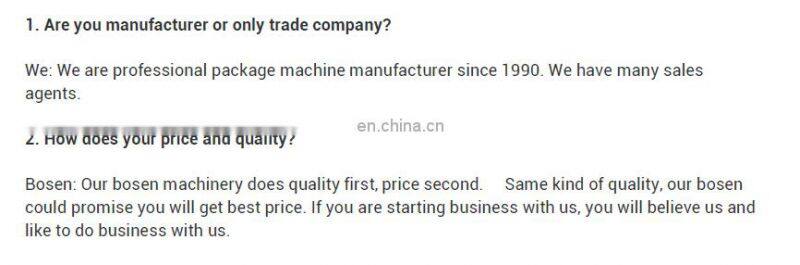 BOSEN BAG MAKING MAHINERY INCLUDING BOTTOM SEALING BAG, SIDE SEALING BAG, ROLLING LINKABLE BAG, BARBAGE BAG, FLAT BAG, ARC BAG, COLD CUT BAG, HOT CUT BAG, T SHIRT BAG, NON WOVEN BAG, PAPER BAG, WOVEN BAG, PLASTIC BAG, PP BAG, PE BAG, PVC BAG, NYLON BAG, HOT SHRINKBALE CUT, CLOTH BAG, SHOPPING BAG AND SO ON. YOU COULD CHECK YOUR REQUIRED BAG DETAILS ONLIN OR YOU COULD SEND US YOUR SAMPLE ONLINE OR EXPRESS.