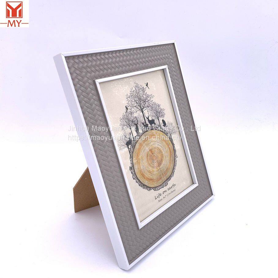 PS Bamboo Weaving Design White Frame Plastic Photo Picture Frames