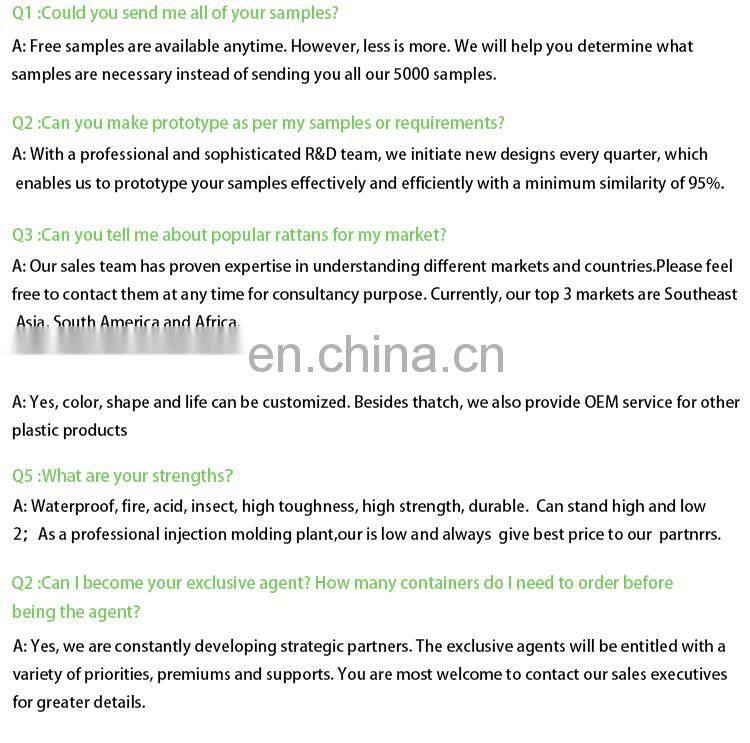Foshan Haobike Plastic Products Co. Ltd. is a manufacturing factory focusing on Synthetic Thatch, Artificial Thatch, ThatchRoofing, Roof Thatch, Synthetic Bamboo, accumulating 15 years professional industry experience. We have independent research and development team, being able to independently develop design products. Products can be customized according to customer requirements, being able to provide OEM, ODM service.