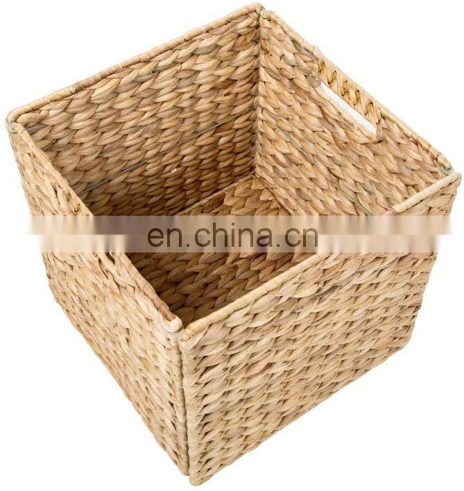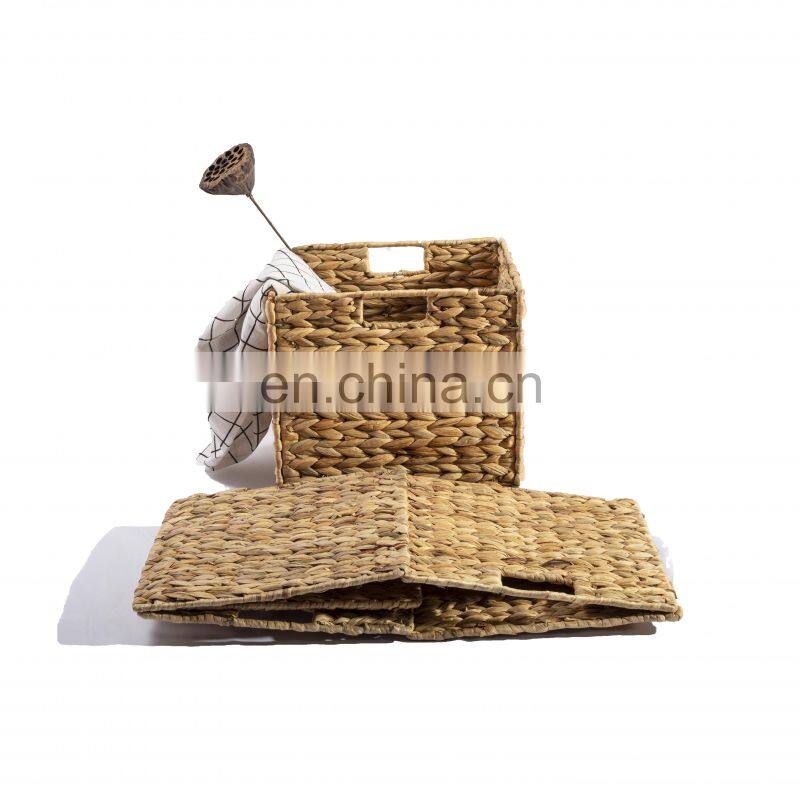 Direct Selling Rectangle Hand-woven Water Hyacinth Wicker Storage Rattan Baskets for Sundries