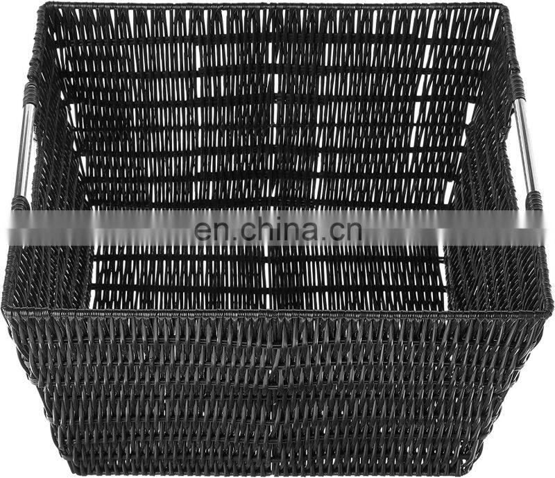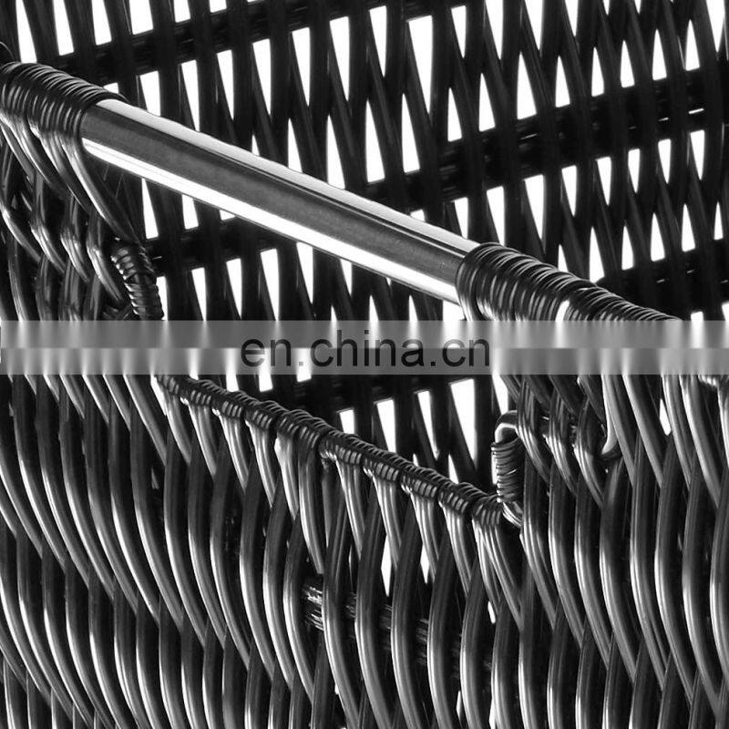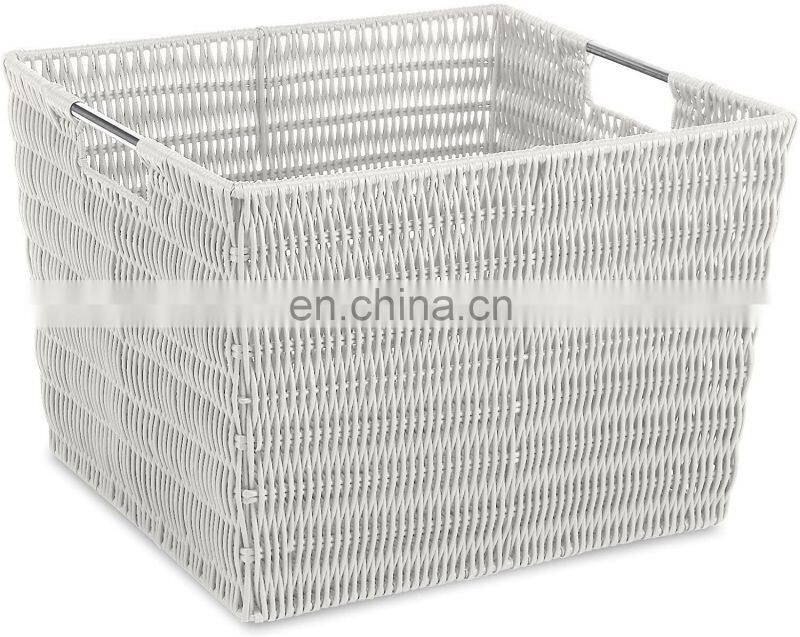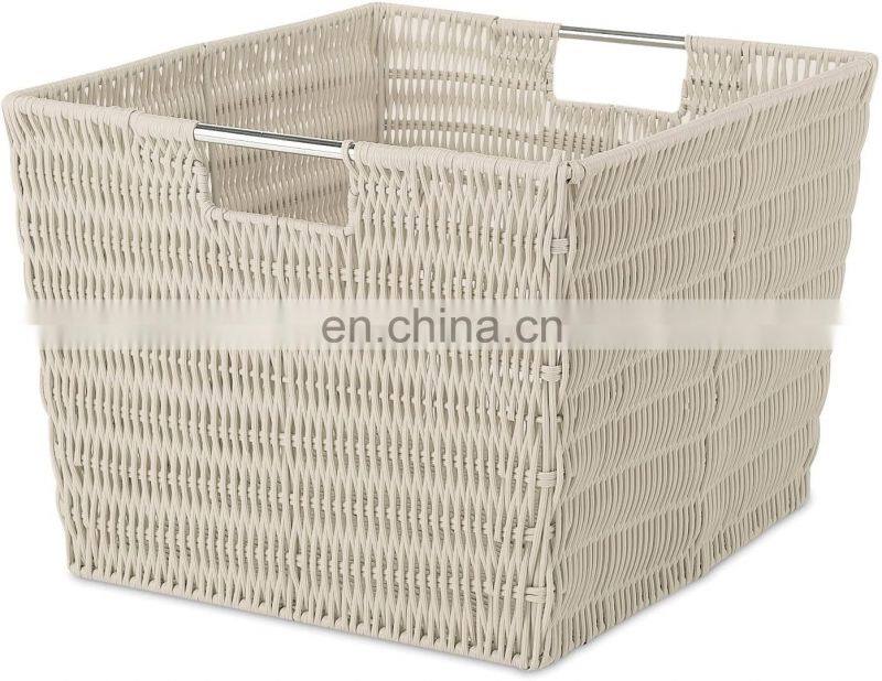High Quality Large Capacity Stainless Steel Frame Hand Woven Storage Basket Plastic Vine Storage Box