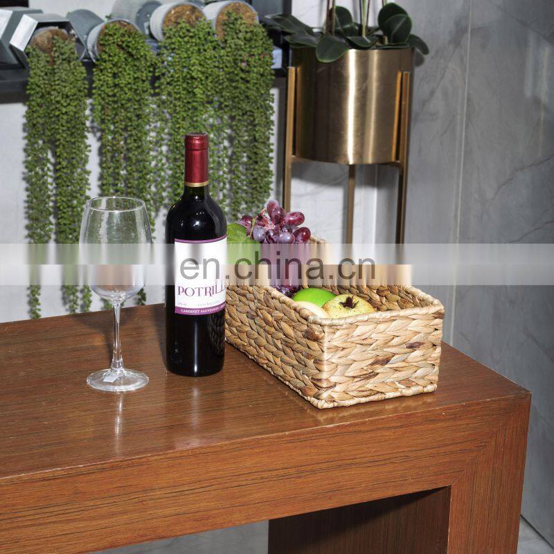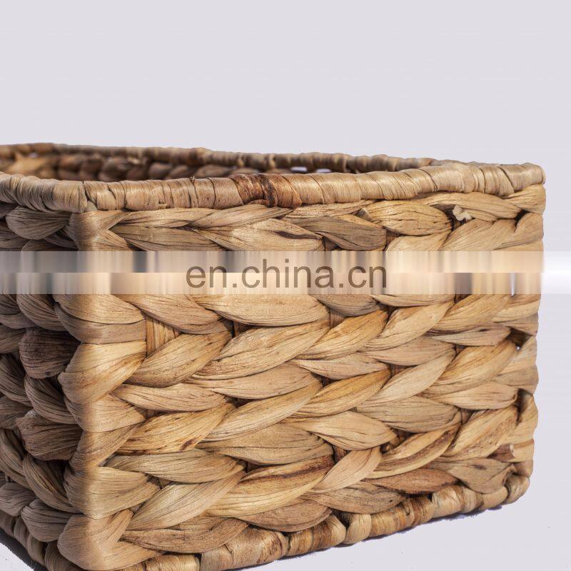 HBK Rectangle Water Hyacinth Woven Rattan Storage Basket Storage Box for Bathroom and Kitchen Storage