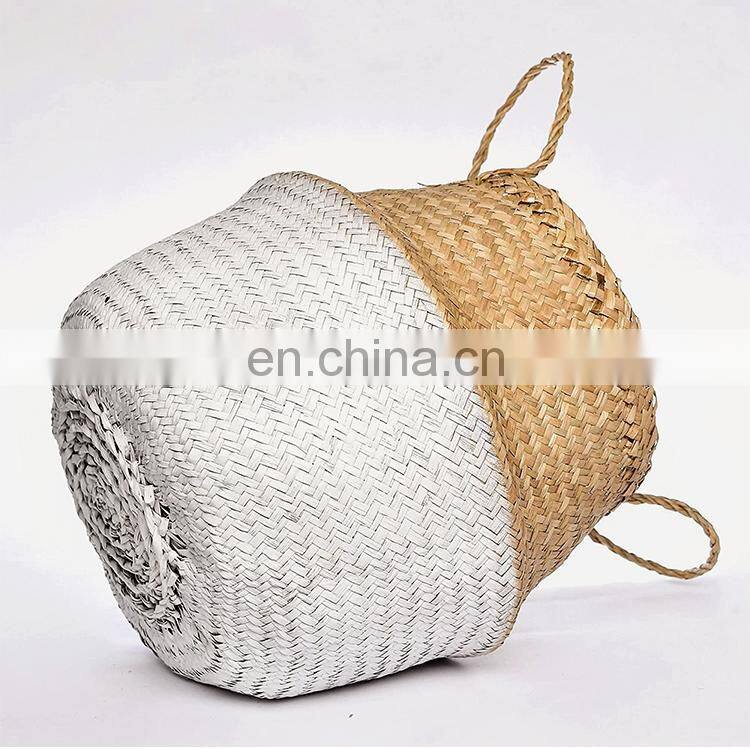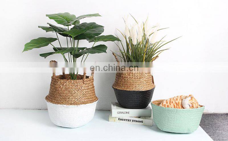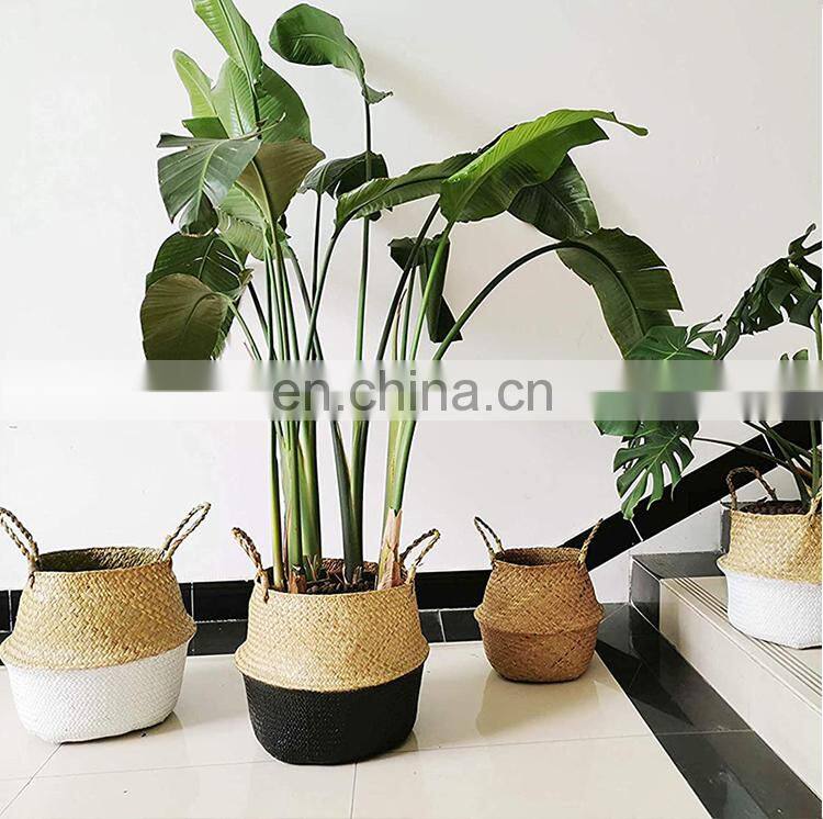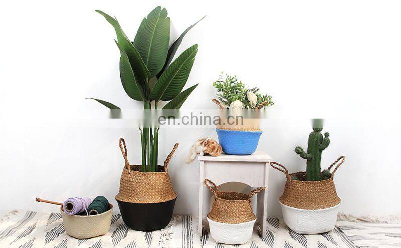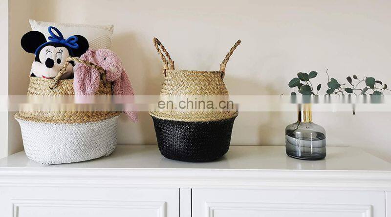 HBK Bicolor grey flower pot kid toys clothes woven foldable belly basket for seagrass