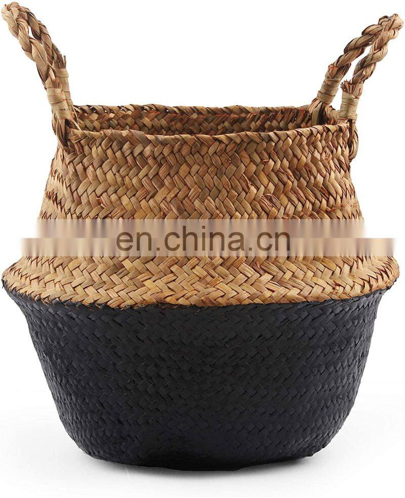 Product Name | HBK Bicolor grey flower pot kid toys clothes woven foldable belly basket for seagrass |