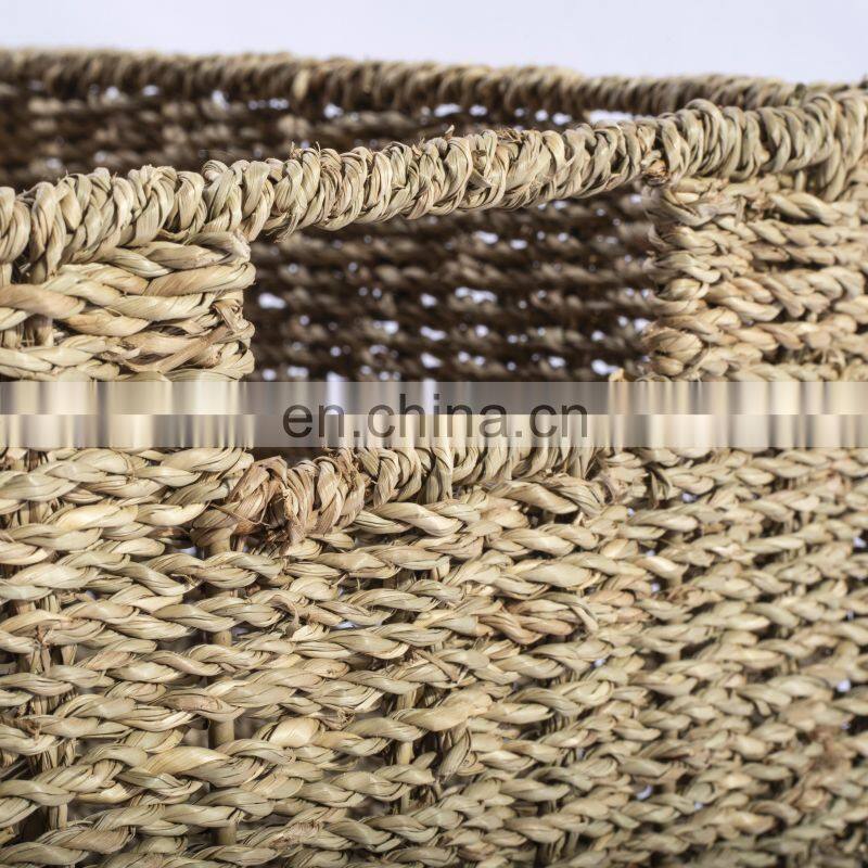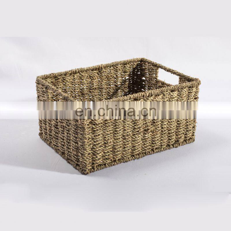 Wholesale Rectangle Woven Rattan Seagrass Basket Hand-Woven Storage Baskets for Bedroom and Bathroom