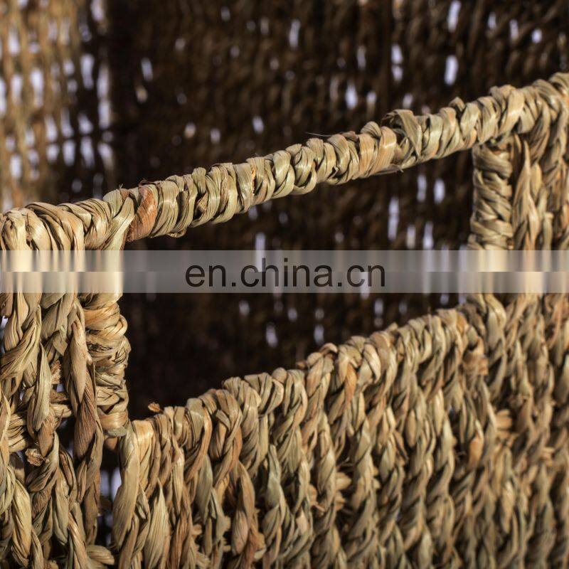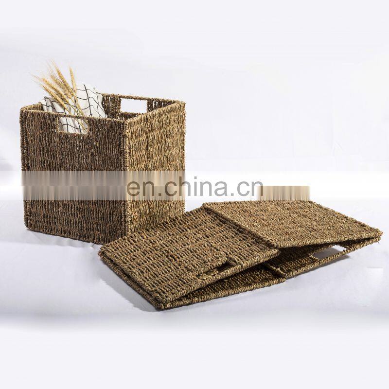 Wholesale Hand-Woven Cube Square Collapsible Rattan Seagrass Storage Baskets Box for Bedroom and Bathroom