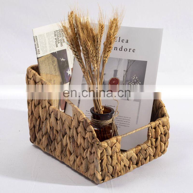HBK Magazine Newspaper Organic Water Hyacinth Rattan Storage Basket for Schoolroom and Bedroom
