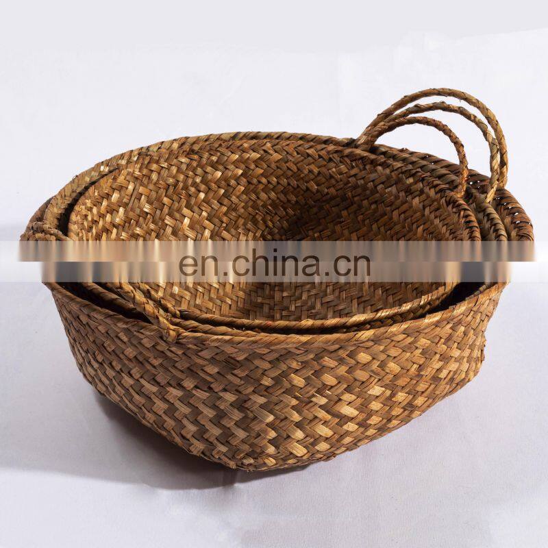 HBK Three Piece Set Circular Rattan Fruit and Egg Storage Basket for Natural Rattan