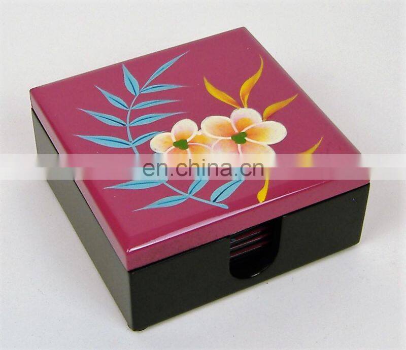 Asian Artisans Pink Palm Leaf Wooden Lacquer Coaster Set Custom Design Drink Cup Coaster Set For Table Decor Wholesale