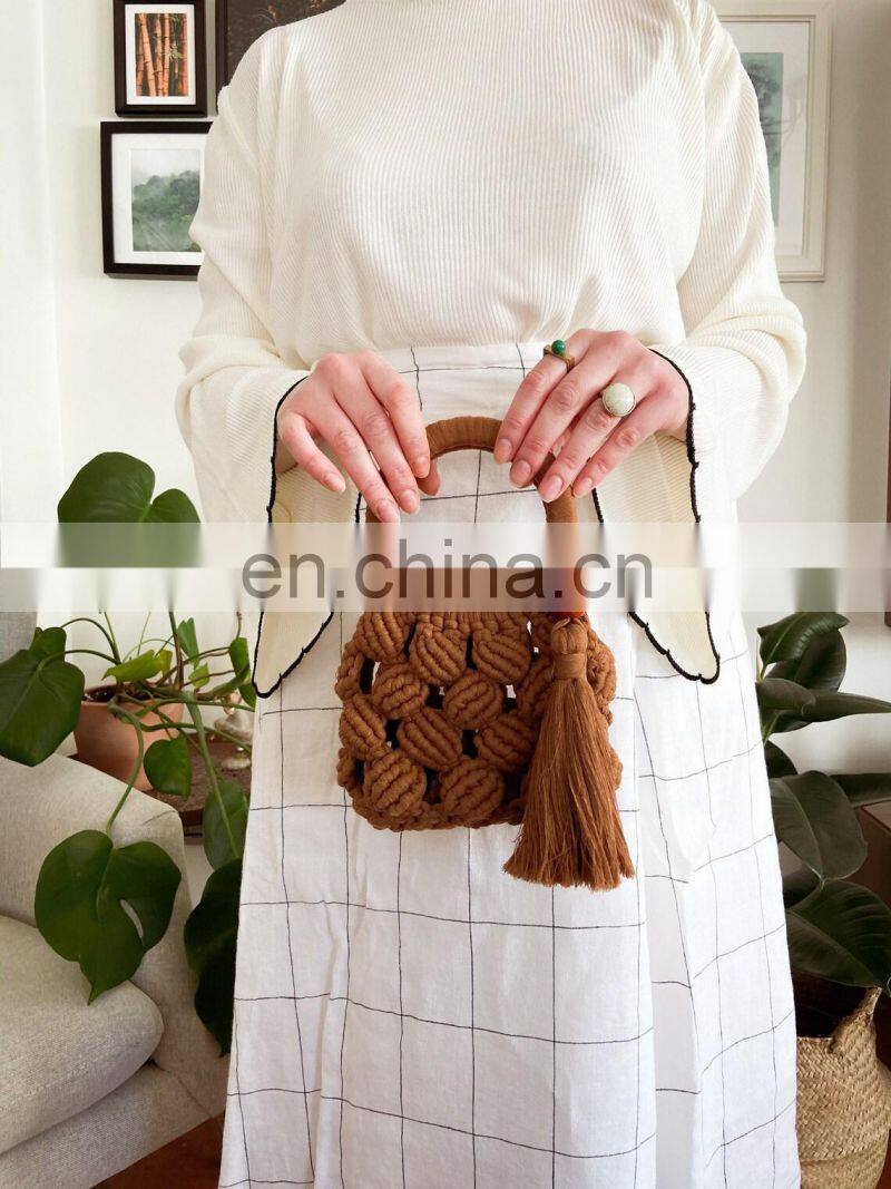 Macrame Handcrafted Brown Women Hand Bag Wrist Bag Clutch