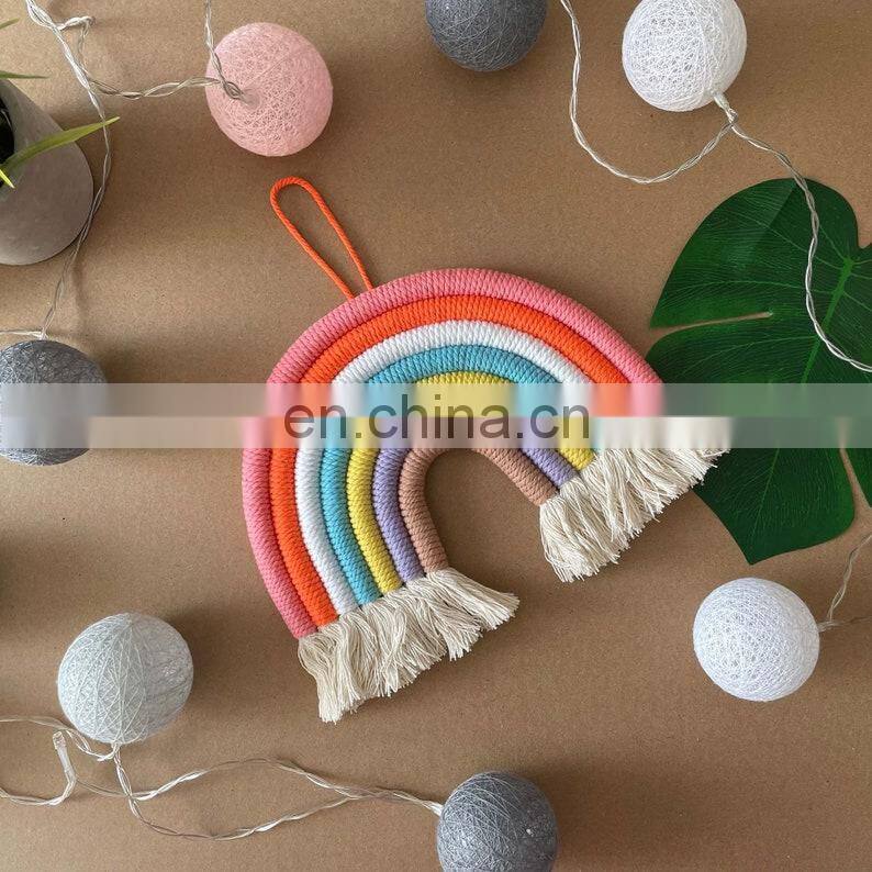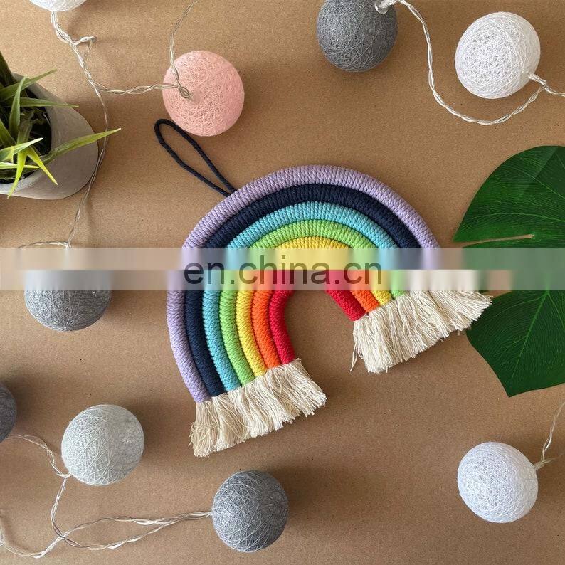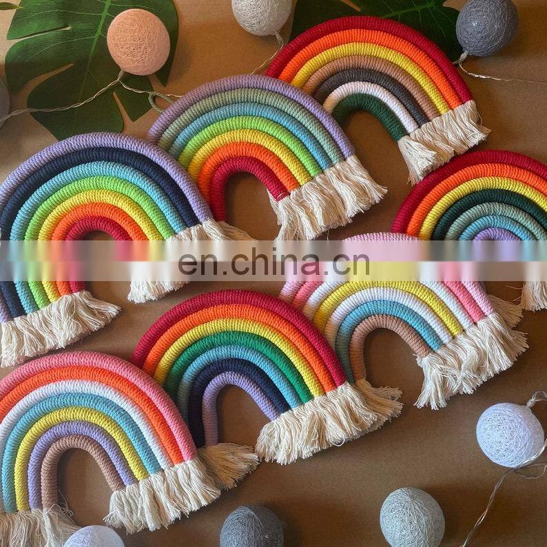 Home > Products > Crochet, Cotton Rope, Macrame Items > Hot Sale Macrame Rope and Cotton Yarn Rainbow Wall Hanging, Baby Room Decor, Wall Hanging Decor