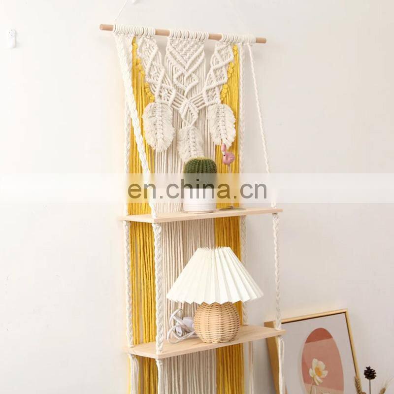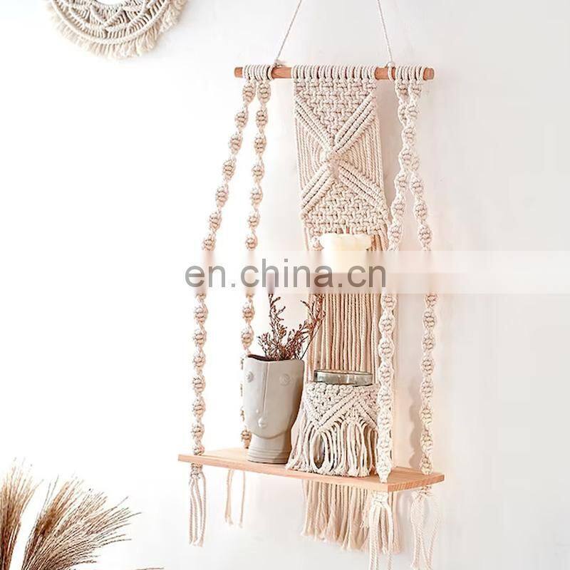 Boho Indoor Hanging Shelves for Wall, Macrame Wall Hanging Shelf Decorative