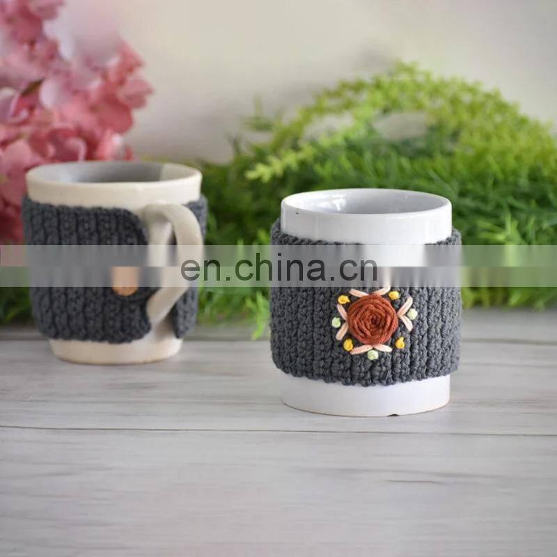 Mug cosy with flowers warm macrame Coffee Mug Cover Cozy holder