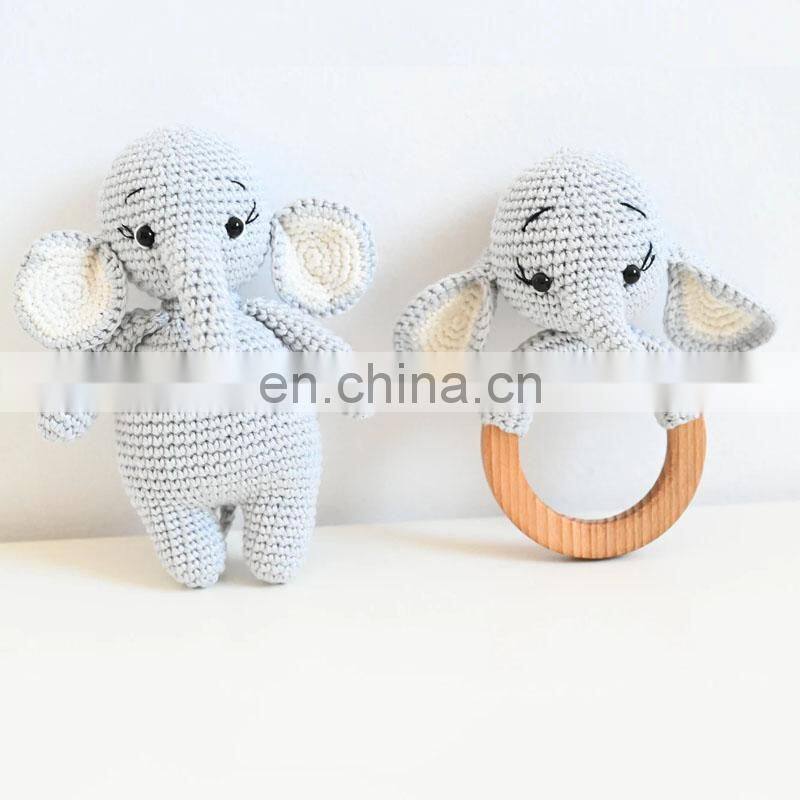 Cuties Crochet Amigurumi Fox Doll Rattle Set Baby Gift Elephant Wooden Teether Ring Kid's Toy Vietnam Supplier Cheap Wholesale