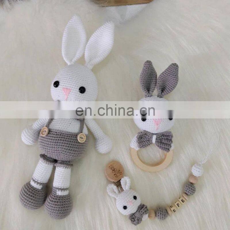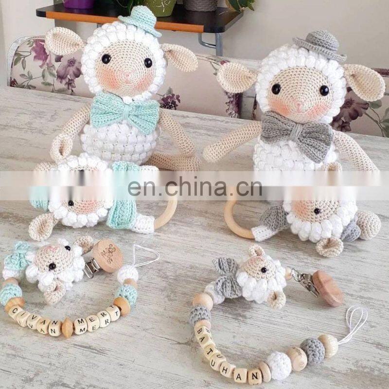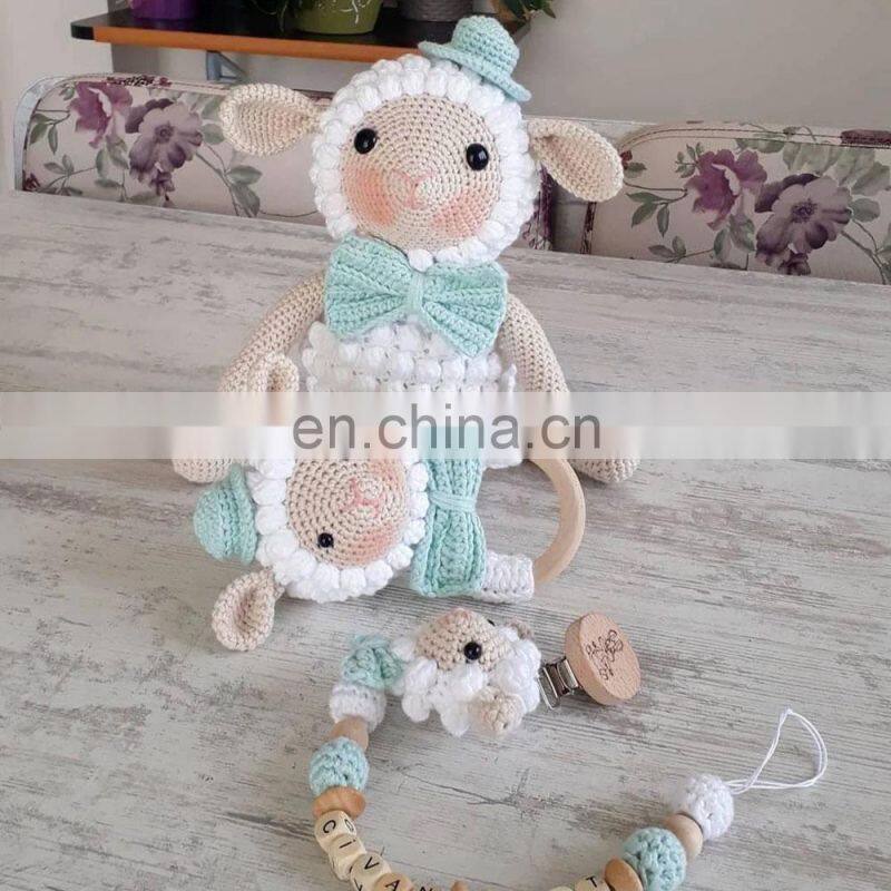 Best Price Crochet Sheep Doll rattle and personalized pacifier holder set Newborn natural organic toys Vietnam Supplier