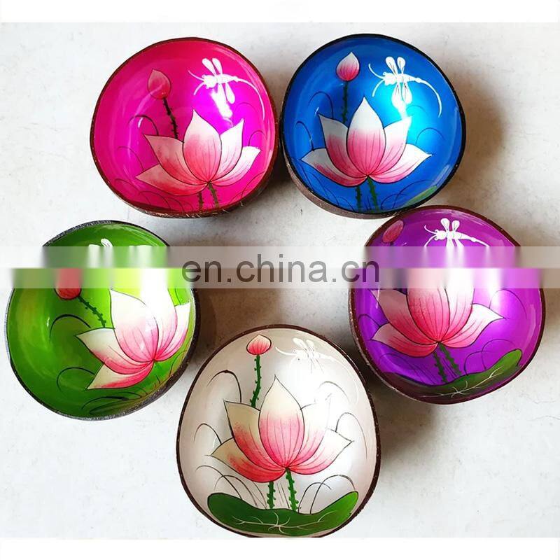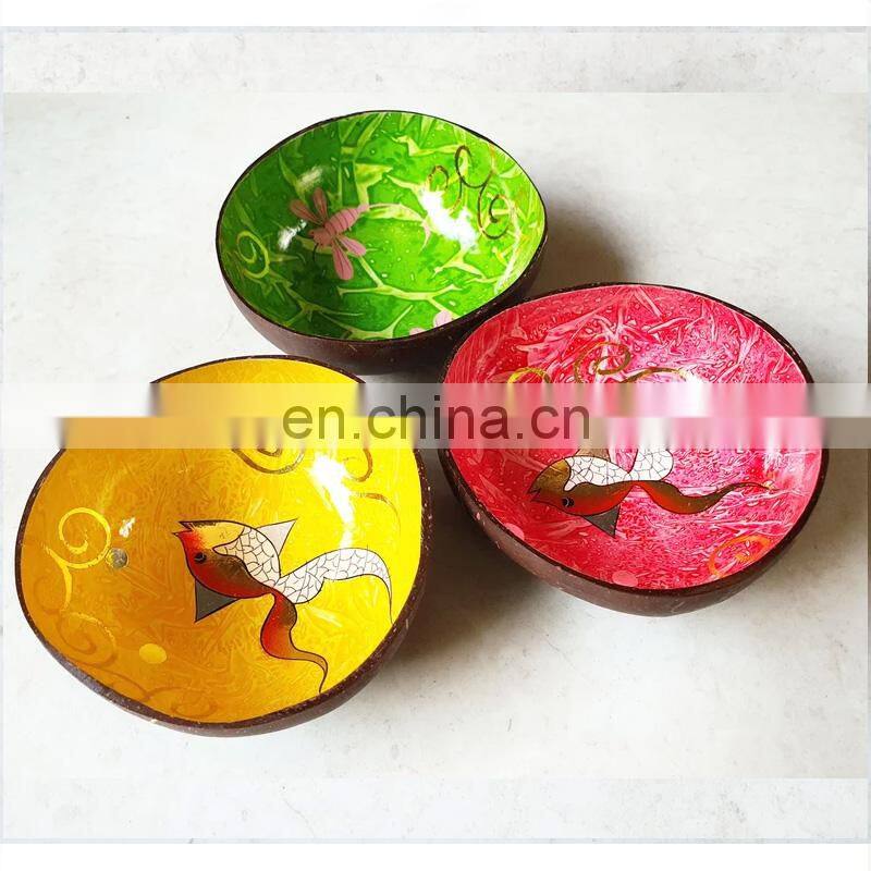 Vietnam Natural Hand Painted Coconut Shell Bowl Wholesale Multiuse Natural Coconut Salad Bowl