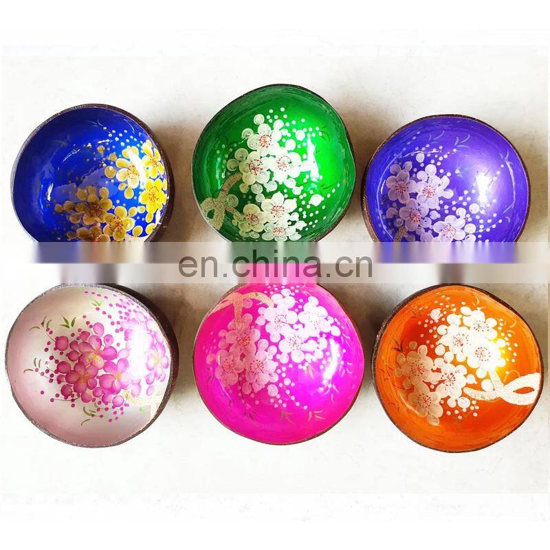 Vietnam Natural Hand Painted Coconut Shell Bowl Wholesale Multiuse Natural Coconut Salad Bowl