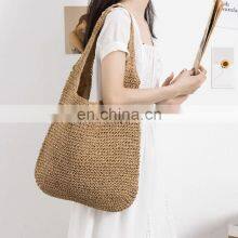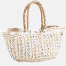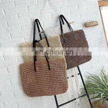 Cheap Rustic Soft Seagrass Handbag Big Tote, Natural Basic Form Straw Summer Paper Recycle Basket Vietnam Supplier
