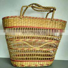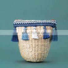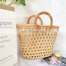 Handicraft Summer Carrycot Bag Vintage Straw Beach Bag Seagrass Tote Basket High Quality Wholesale