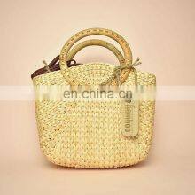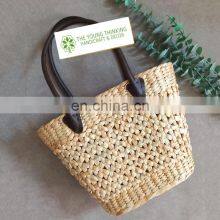 Hot Sale Vintage Water Hyacinth Handbag Leather Strap for Work, Woven Tote Bag With Rustic Design Wholesale Vietnam Manufacturer