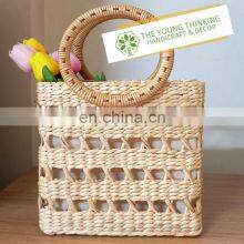 Unique Simple Water Hyacinth Handbag With Rattan Handle, Woven Tote Bag Hot Trend 2023 Wholesale Vietnam Manufacturer