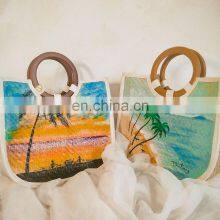 Hot Sale Hand Painted Seagrass Handbag, Natural Beach Bag Party, Round Straw Summer Basket Vietnam Supplier